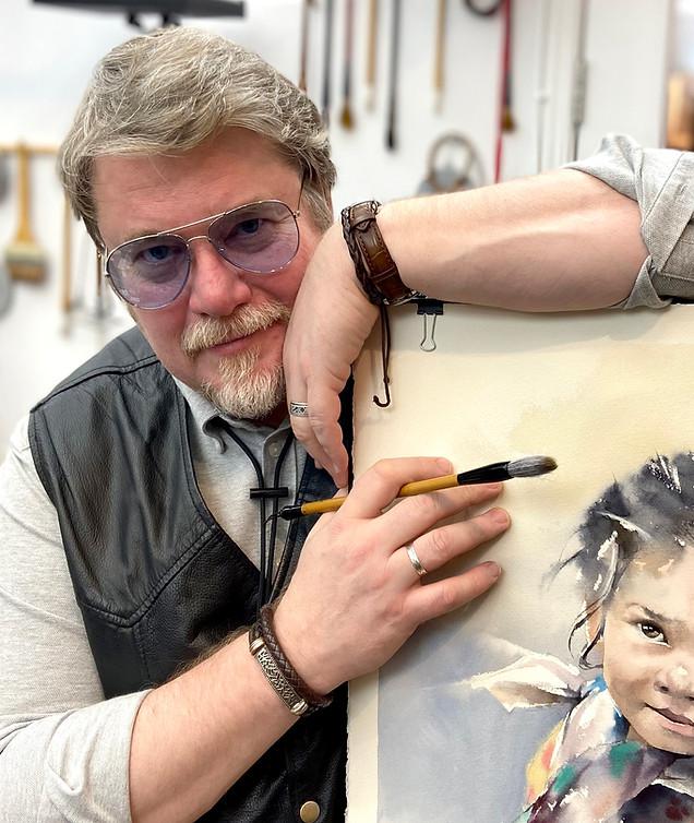Michael sees his work as an artist as exploration and observation of the world and its presentation in such way the others can see the things he saw – one of the most interesting jobs in the world. His stage designer background as provided two main insights fundamental for his subsequent watercolor artist career – understanding that the light is paramount to the art and the love for collective co-creation. Watercolor is the most interesting medium to Michael because it is the only material on the whole planet where he is not solely responsible for the creative process. Rather than working alone, he forms a partnership with the water. Watercolor flows, permeates the medium, it exists in ?me as an alive being. Michael works together with the watercolor in a fascinating process of co-creation which leads to interesting outcomes. Such partnership does not exist in all other branches of visual arts. Michael considers adrenaline and experimentation the necessities of the creative process, always challenging himself with new techniques, ideas, stories, and materials. Willingness to experiment and create led Michael to design his own line of watercolor materials and release a series of watercolor video lessons.